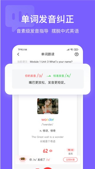 英语说学生版是一款学习英语发音、口语的软件,它利用AI智能技术为用户提供语音评估、阅读评估等服务,帮助你纠正发音并支持教材同步,让你随时随地学习、阅读,学习英语不再那么困难。软件功能非常丰富,包括单词发音考核、背单词、听写单词、句子考核、课文阅读考核,还有听说模拟单元测试、模拟考试等20多项听说考核功能,根据您的学习需求进行选择,从头开始学习并掌握英语基础知识。同时,您可以在线模拟考试,您可以根据自己的水平选择相应的考试内容,高效学习,提高学习能力,除了口语交流之外,它还无缝继承了查词、翻译、词汇书等工具,让你的英语积累过程更加高效,不再为英语成绩提不上去而烦恼,有需要的用户赶紧下载来试试吧。