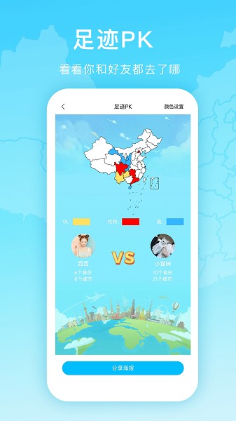 4、可以和自己好友进行PK,看看双方去过多少地方,非常的方便。
