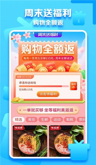 2、【1元闪购】精选商品每周1元秒上架,全国包邮,分享就有惊喜。
