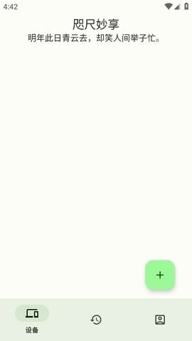 咫尺妙享app是一款专业的手机文件互传工具,你可以进行局域网连接快速找到匹配设备进行文件互传。支持多种文件格式,让用户进行文件共享,传输速度非常快速,让大家再也不会为了传输文件数据而发愁,快来下载体验吧!
