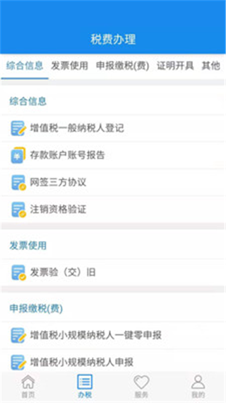 根据不同的纳税人身份类别,您可以通过该版块操作“我要办税”功能类别,发起办理基本涉税业务,包括发票使用、税(费)申报缴纳、开具等。 证书及其他相关涉税事项。