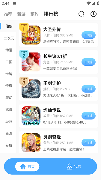 0.1折游戏盒子平台为大家带来了多种多样的手游资源,在分类中轻松挑选想玩的游戏,各种折扣手游都可以免费下载安装,让大家享受超级大的充值折扣,还可以免费领取福利礼包了,让大家日常玩手游都非常的轻松。