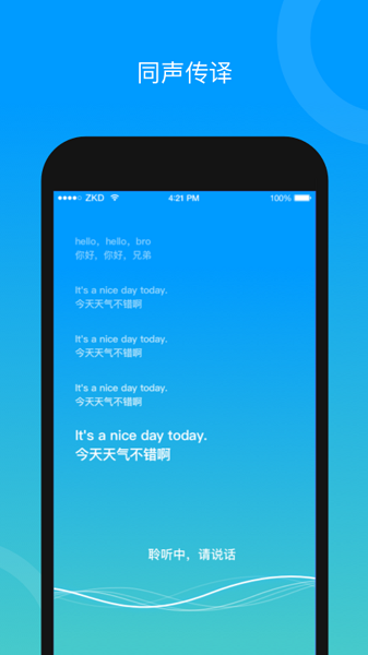 2、语音翻译:边说话边翻译,自动识别语音并转换为文字,再自动翻译为任意语言;