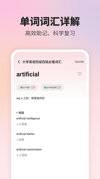 收藏词句轻松复习,释义、听力、发音一步到位。