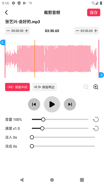 你可以选择保留音频的中间部分,或保留音频的开头和结尾。