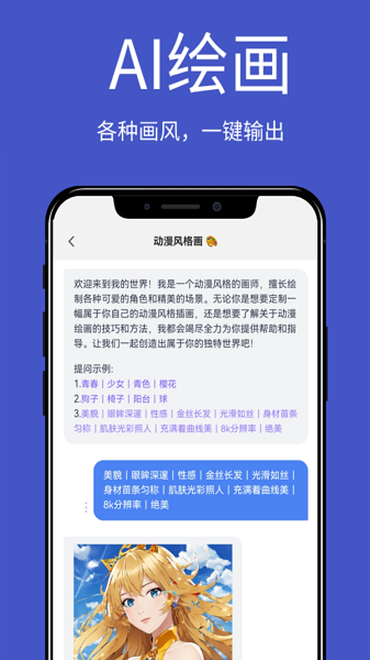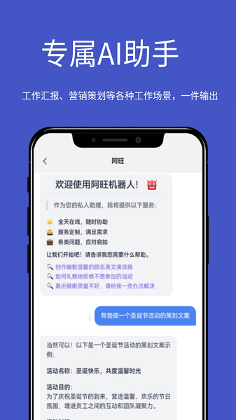 阿旺机器人app可以让大家在这里自由的启动AI机器人,想怎么与机器人聊天都行的,能够根据自己的喜好来快速生成各种图文,想怎么进行多语言翻译都行,还可以与机器人玩角色扮演,置顶机器人成为某个角色,操作都很方便。