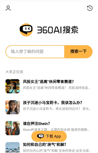 360ai搜索引擎app是由360推出的全新智能大模型搜索答案工具,不论你提出任何的问题智能ai会为你带来最精确的答案。除了智能搜索还为用户带来了语义分析,深度阅读,语音搜索等等丰富的功能,快来下载体验吧!