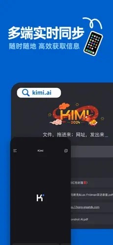 Kimi智能助手应用程序是一款实用的人工智能助手软件,可以处理用户的自然语言输入,进行实时对话和互动,回答问题,提供建议,执行任务;Kimi智能助手应用程序可以帮助用户生成各种类型的图像,以满足他们在创意设计、信息可视化等方面的需求。Kimi是Moonshot AI提供的超长记忆AI助手,支持约20万个汉字的上下文输入,具有显著的中文优势。它可以回答问题,快速阅读文件,组织信息,激发灵感,并随时协助创作。您可以与Kimi聊天、发送网站链接和上传文件。