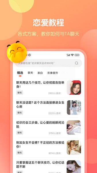 30万恋爱话术库,在不同场景的恋爱话术拈手即来,各种恋爱聊天术、恋爱话术,恋爱脱单、相亲技巧、分手挽回、婚姻家庭、聊天技巧、情感修复,教你如何谈恋爱,提高情商,为你的恋爱情感保驾护航;更有相亲攻略和表白指南。