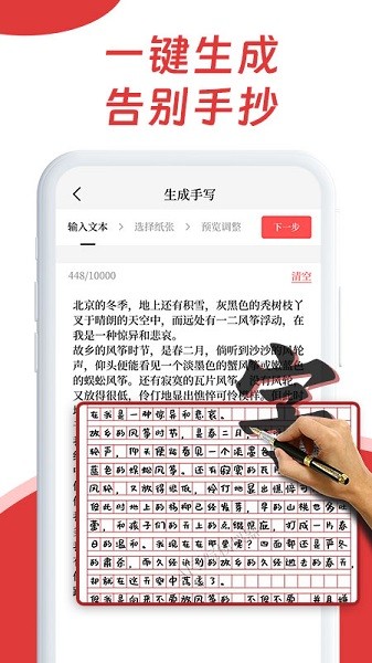AI手写模拟器app线上可以输入标题快速的生成各种内容,写检讨书以及方案或者作文等都可以来这里生成文字,这里也可以自由的设置纸张以及字体,能够模拟手写的字迹,可以连接打印机,将制作完成的文档都可以打印出来。
