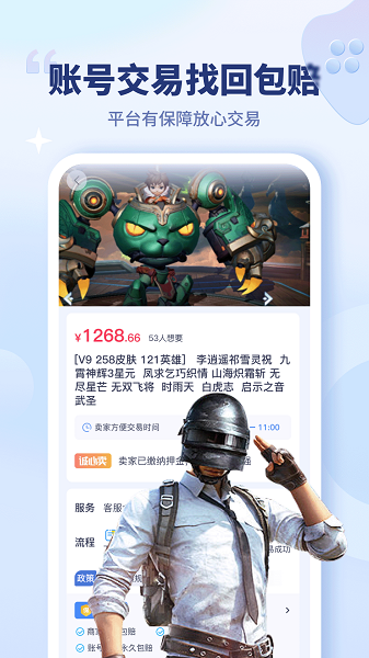3、让大家可以安全交易所有的游戏账号,都是可以享受都账号保障。