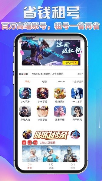 1、为大家带来了非常专业的租号平台,日常租号都非常的方便。