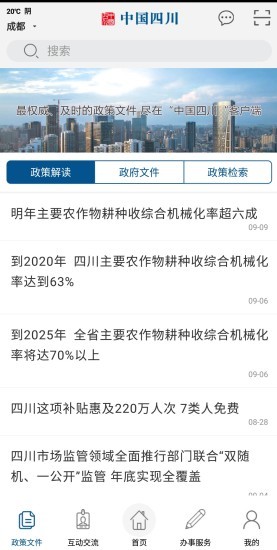 1、“中国四川”客户端开设省政府、常务会议、新闻发布会、采访、民生、政策文件等栏目。