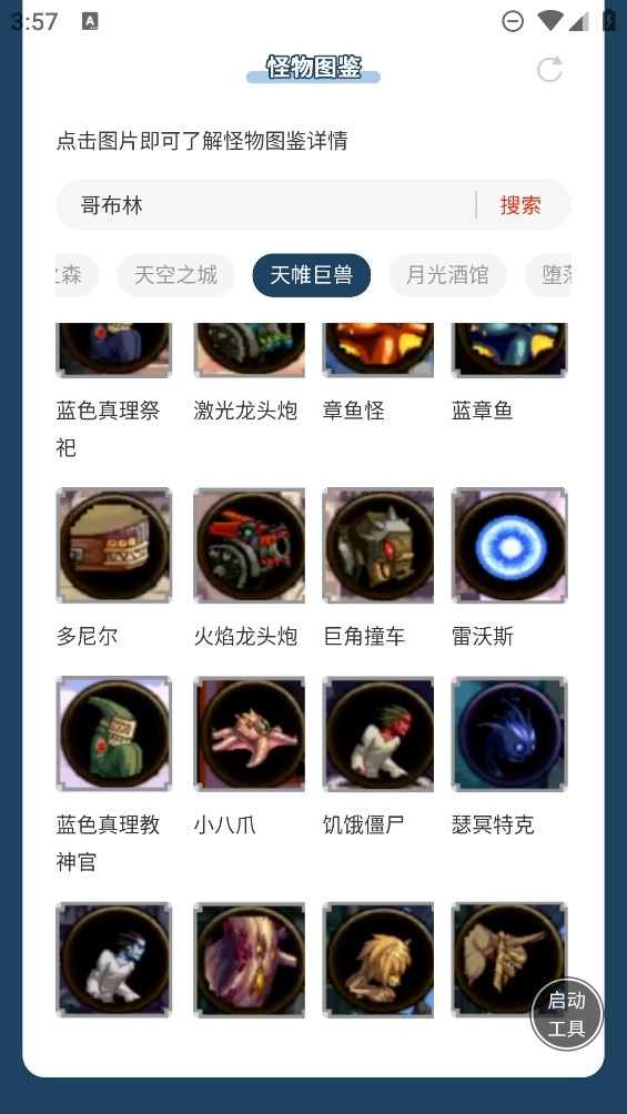 dnf手游怪物图鉴app是一款带来了《地下城与勇士起源》全部怪物信息的图鉴辅助工具,让大家可以详细了解游戏中每一个怪物的信息。包含了怪物简介,怪物技能,击杀技巧等等,你可以直接通过搜索怪物名称或者地图名称找到对应的怪物信息。
