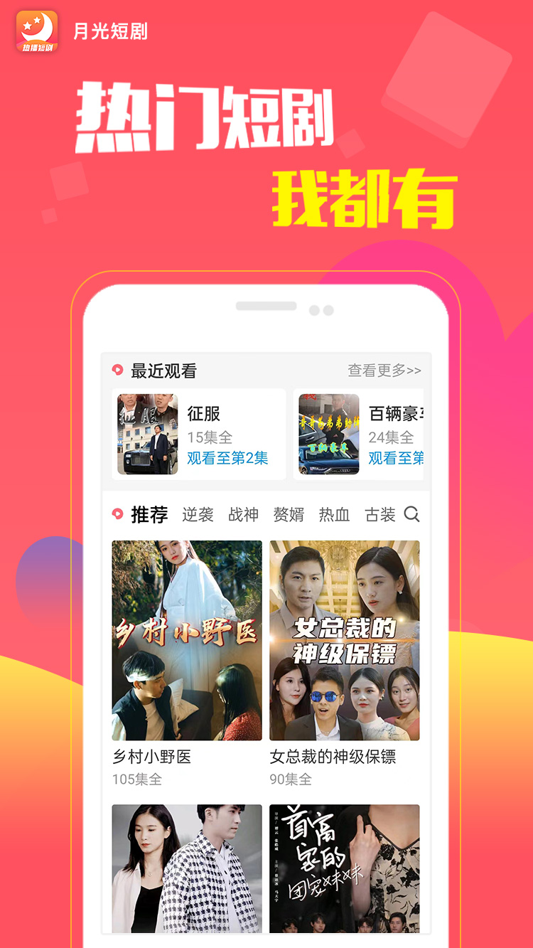 月光短剧是一款短剧资源免费观看平台,在这里,用户可以直接通过该软件免费观看手机短剧,软件功能全面,内置多部优质经典短剧。同时,筛选出各种热门网络视频内容供用户免费观看,剧目数量庞大,一个丰富有趣的短剧平台,在线内容不定期更新,战神、甜宠、推理、反转等满足不同用户的追剧需求,提供丰富多样的精彩短剧内容,简化故事情节,让您在短时间内看剧,内在感受电影的情感和情节,涵盖悬疑、喜剧、爱情等多种题材,满足不同观众的娱乐喜好,有需要的用户赶紧下载来试试吧。