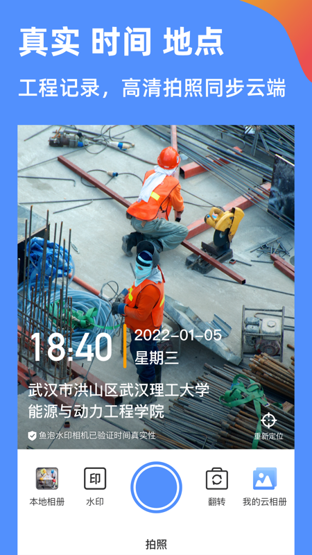 项目工程水印和考勤水印均支持现场水印拍照,使信息更加真实可信。