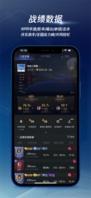 与好友分享记忆、最强腿法、同排英雄胜率分析、特殊记录等数据功能。