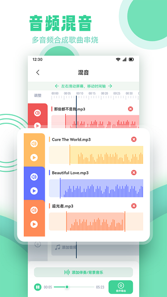 一键实现多音频无缝拼接合成,合成你想要的歌曲。
