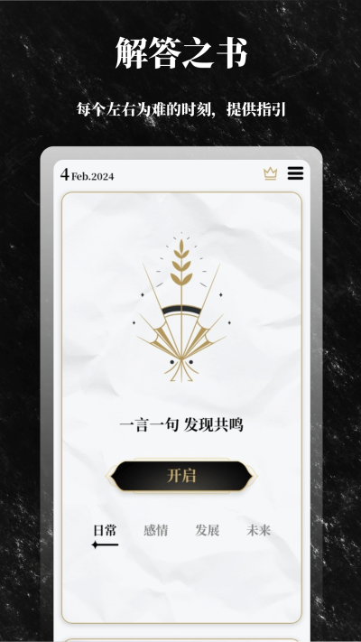关于日常生活、人际关系、发展、未来的问题,思考你心中的问题,选择相应版块,点击打开