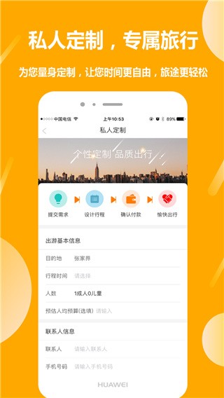 2、平台可根据游客的个性化需求量身定制旅行路线,提供贴心的自由行导游服务,让您告别繁琐的旅行攻略和强制购物点,享受纯粹的旅行体验,每一分钱都花在刀刃上。