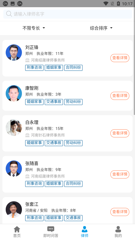 1、寻找律师:覆盖全国各城市优质律师事务所,用户可以在律师快慧APP上选择合适的律师进行咨询;