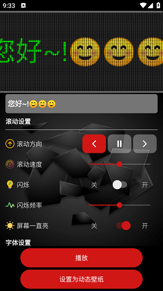 LED Scroller手机版可以让大家在这里可以快速将手机的屏幕变成LED显示屏,无需过多的操作,想输入多少文字进行显示都行的,还可以设置文字大小和颜色,文字滚动的速度也是可以进行调整的,操作都是非常便捷的。