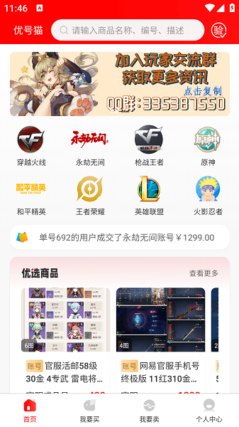 优号猫平台app可以让大家在这里自由的交易游戏账号,怎么买卖各个游戏账号都行的,能够安全的进行交易。线上可以在分区中筛选出自己心仪的游戏账号,还可以输入关键词搜索相关的游戏账号,可以对比多个账号再交易。