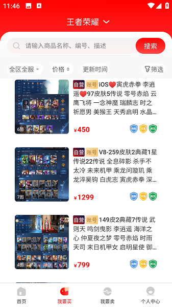 1、线上可以让大家轻松找到各种优质游戏账号,轻松的进行交易。