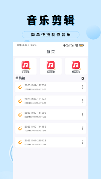 音乐剪辑工厂app为大家带来了多种多样音频编辑工具,让大家导入各种格式的音频都可以按照需求进行编辑,无论是剪辑拼贴还是转换格式都可以的,让新人都可以轻松的上手编辑音频,每次都可以实时的进行保存,很方便的。
