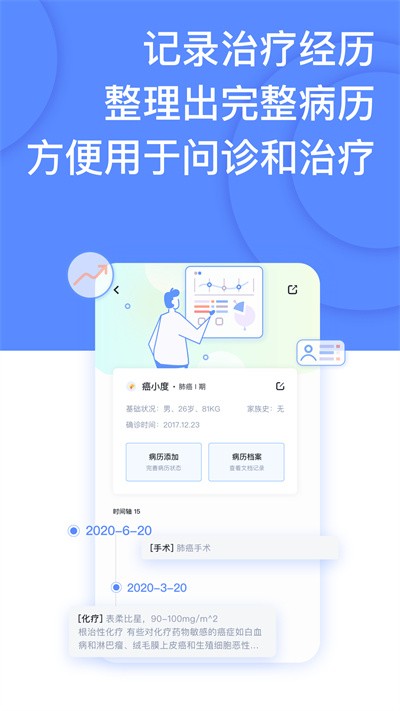 抗癌历程追踪:记录抗癌每一步,每次信息更新都会重新检索相似病友。