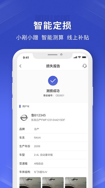 提供了智能测损功能能够测出车辆的保险杠、引擎盖等是否有损失情况。