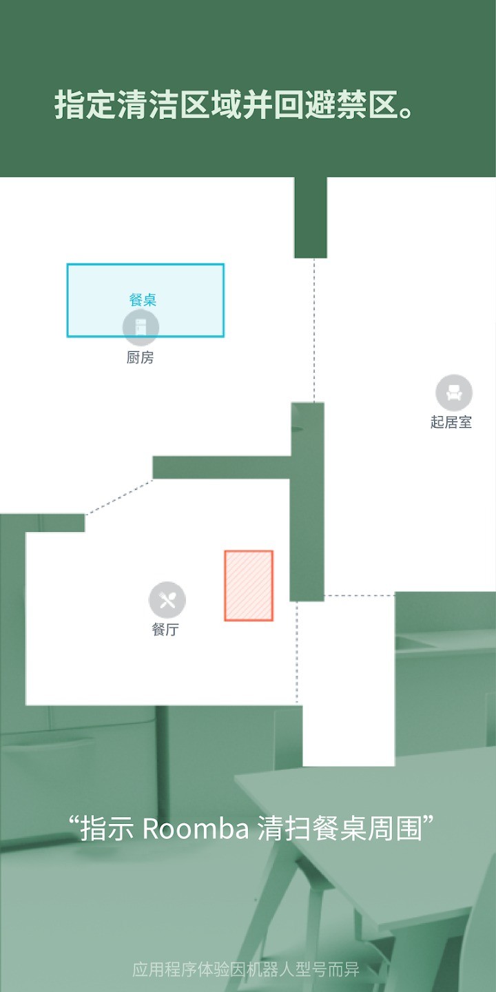 可自定义的家中地图使您的机器人可以远离“禁区”,直奔目标,按房间、物体或区域进行清洁。