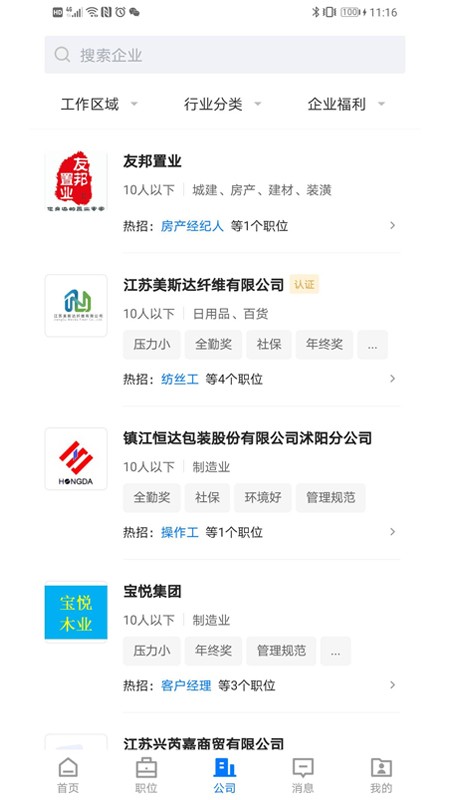 2、可以查看各个企业信息,入驻的企业都进行了认证,很安全。