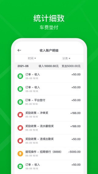 有补单奖励、峰值奖金、流水奖励等丰富活动; 订单统计详细,结算周期可自由选择。
