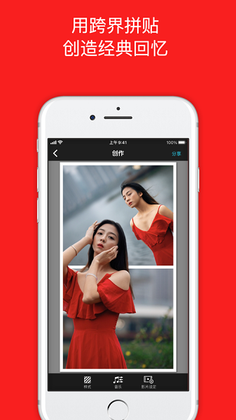 尺寸可达 3x3 网格、9 网格或 9 帧的照片、视频或 GIF 拼贴