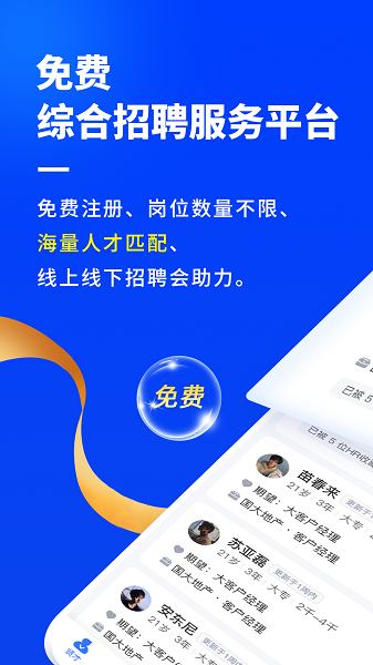 1、为大家带来了免费的求职招聘平台,想怎么进行求职招聘都行的。