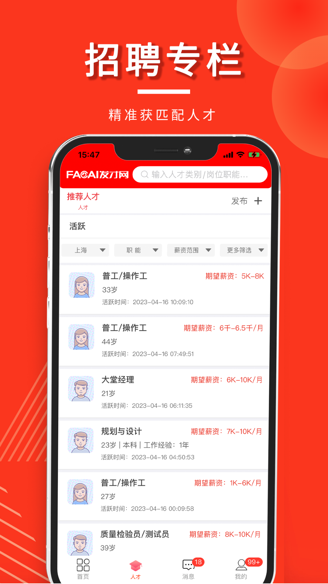 发才网日均在线百万岗位,直接沟通,当场拍板,闪电入职。