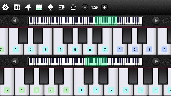 多种钢琴键盘模式:单排横屏模式、双排横屏模式、双人同弹琴模式。
