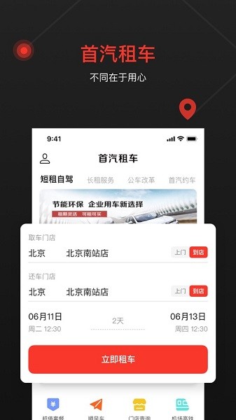 无需繁琐操作,app内完成订单,上门送车取车,让租车像点外卖一样简单。