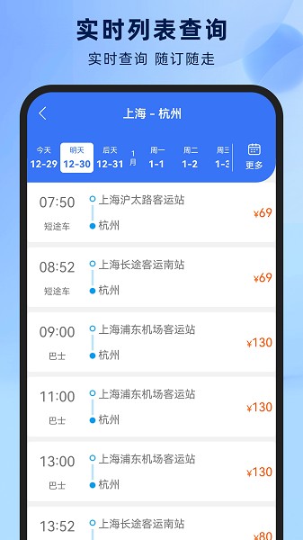 2、可以让大家实时查询汽车班次,显示的时间都很详细,自由买票。