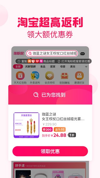 淘粉吧是一款能够快速提供各种购物体验的手机购物类软件,淘粉吧软件提供各种不同的商品货源,会根据不同的标签进行详细的分类,方便用户快速找到自己喜欢的商品,还有各种购物功能,方便用户轻松进行使用,让用户可以轻松省钱。