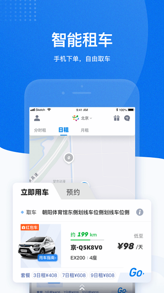 百款车型,上万车辆,让您无需购车、养车,亦可享受独立灵活的城市驾车乐趣。