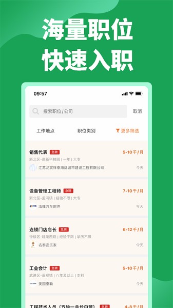 覆盖常州新北、武进、钟楼、天宁、金坛和溧阳上万岗位