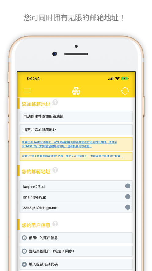 一次性邮箱(InstAddr)软件申请临时的邮箱,支持接收和发送邮件,保护自己的隐私,不泄露真实的邮箱,让大家怎么使用临时邮箱都支持的。线上的邮箱也是长期有效的,能够让大家永久用下去,每次申请多个邮箱很方便。