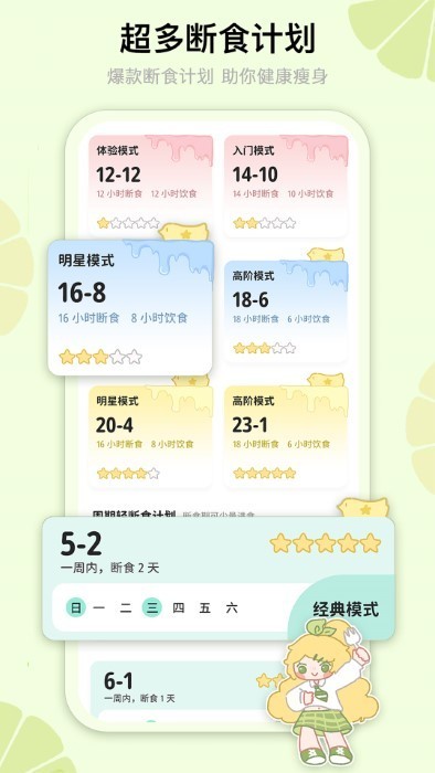 1、个性化定制:软件支持用户根据自身的身体状况、减肥目标和饮食习惯,定制专属的断食计划。这种个性化的服务能够更好地满足用户的需求,提高减肥效果。
