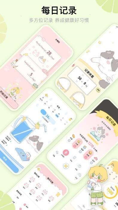 贴心记录您的饮水/体重/饮食/心情/周长/大姨数据,严格控制热量改善新陈代谢,帮助您轻松自律养成易瘦体质,科学减肥不反弹~
