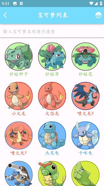 2、可以输入关键词搜索对应的宝可梦,日常查找宝可梦都是很方便的。