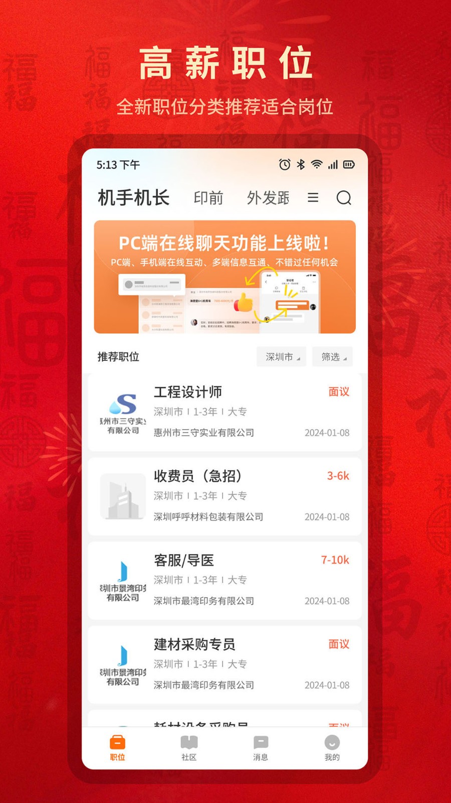 印刷人才网app最新版专门为印刷行业人员打造的一站式求职招聘平台,在这里每天可以自由寻找优质的工作,众多的企业都入驻了平台,让大家每天按照分类筛选或者搜索找到相关的岗位,轻松的编辑自己的简历进行投递。