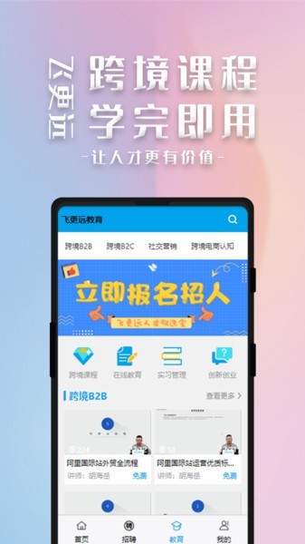 飞更远软件还提供了丰富的课程学习资源,包括跨境课程、创新创业课程、学历教育等,帮助用户提升专业技能和知识水平。