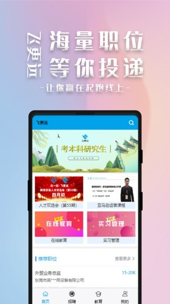 飞更远是一款专注于人才招聘和求职的平台软件。它提供了丰富的功能和服务,旨在帮助企业和求职者更有效地进行招聘和应聘活动。对于企业来说,飞更远可以帮助它们发布招聘信息,寻找合适的人才。企业可以发布自己的职位信息,包括职位描述、任职要求等,以便求职者更好地了解职位详情。同时,企业还可以通过筛选功能快速找到符合自己需求的求职者,有需要的用户直接下载就可以开始体验了。